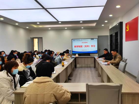 会上,张磊带领全体教师认真学习教学制度文件,要求全体教师认真学习各项教学制度,严格按照制度高标准开展教学工作,追求卓越、做到极致,推进学校双高建设高质量发展。