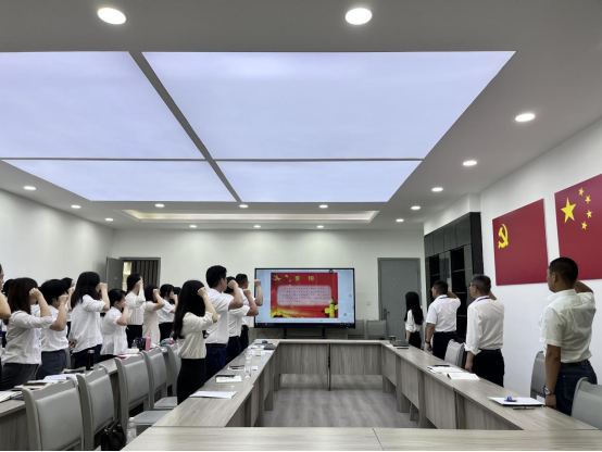“我志愿加入中国共产党,拥护党的纲领,遵守党的章程,履行党员义务……”面对鲜红的党旗,通过重温入党誓词,回顾当初入党宣誓时的庄严承诺和坚定决心,再一次接受心灵的洗礼,进一步坚定了理想信念,增强了党性意识。