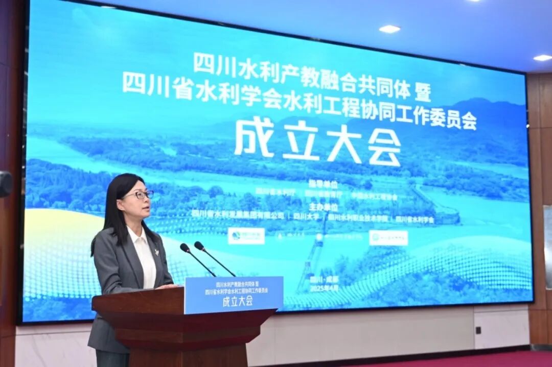 四川省委教育工委委员、教育厅党组成员、副厅长石静指出,四川水利产教融合共同体及水利工程协同工作委员会的组建,汇聚了四川大学等高水平综合性大学、四川水利职业技术学院等职业院校、四川水发集团等行业龙头企业以及水利学会等社会团体组织等力量,构建起“本科教育厚植创新能力、职业教育强化实践技能、行业资源反哺教学改革”的产教融合新格局,为破解水利行业“科研创新缺载体、技术转化缺路径、人才供给缺精准”的难题提供系统性解决方案。她强调要以此次共同体成立为契机,健全机制,高效运行,对接需求,协同共建,推动创新,服务发展。