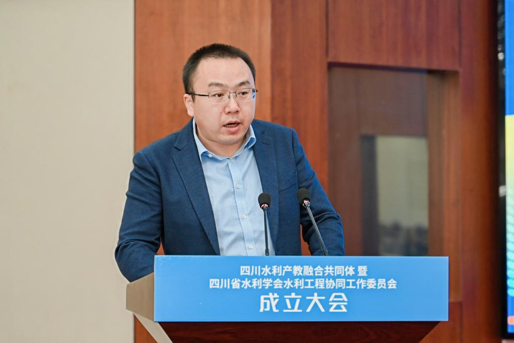 中国水利工程协会会员管理部主任袁建刚到会指导。他指出,此次共同体和委员会的成立是全国水利行业协同创新的重要实践,期待能够依托龙头企业、高校、学会共建的协同平台,打造“四川范式”,构建技术创新“联合体”,筑牢行业标准的“压舱石”,聚焦数字孪生、BIM技术、绿色低碳等前沿领域,以 “揭榜挂帅”机制推动产学研联合攻关,加速技术成果向重大工程转化。四川水利职业技术学院、四川大学、四川省水利发展集团有限公司和四川省水利学会相关领导分别代表四川水利产教融合共同体发起单位,在成立大会上发表讲话。