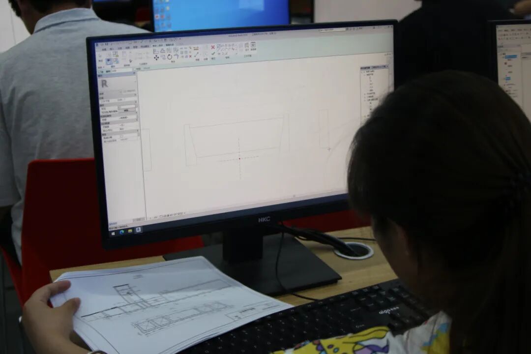 现场参赛的选手们全神贯注,手指在键盘上翻飞,目光紧盯屏幕,或构思建筑模型,或绘制精准图纸。每一笔、每一划都倾注心血,在专注中挑战自我,向着荣誉全力进发。