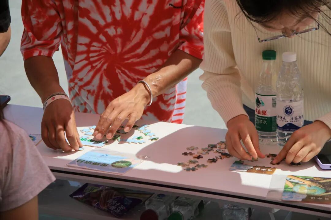 “拼滴水之力,护生命之源”拼图活动现场亦是人头攒动、热闹非凡。同学们全神贯注,将一片片承载着对水资源珍视与保护之情的拼图,精心拼接成一幅幅完整的画面。在拼接的过程中,大家深刻认识到水资源的珍贵与脆弱。此次活动不仅加深了师生对世界水日的了解,更如同一把火,点燃了大家保护水资源的热情,激发了强烈的责任感。
