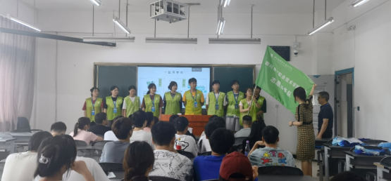 活动最后举行了“节能志愿服务队”授旗仪式,由莫建红老师将队旗交于水利工程学院节能志愿服务队,在一片掌声中本次环保进校园宣传教育活动圆满落幕。